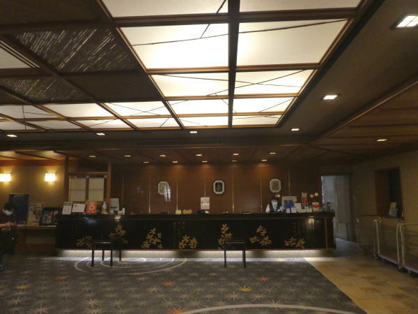 14時チェックイン。ロビーは古風な日本旅館の風情がいい。 |