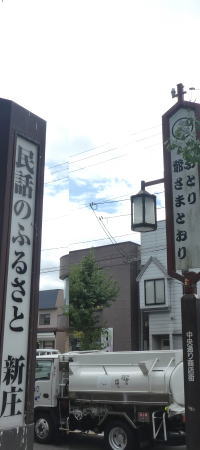 駅を背にして「金の茶釜とおり」「こぶとり爺さまとおり」民話のふるさと新庄だけに面白い名前がついた通りを抜け公園へ。 |