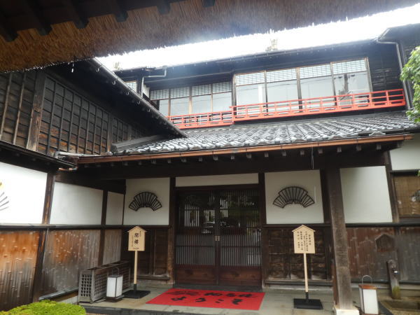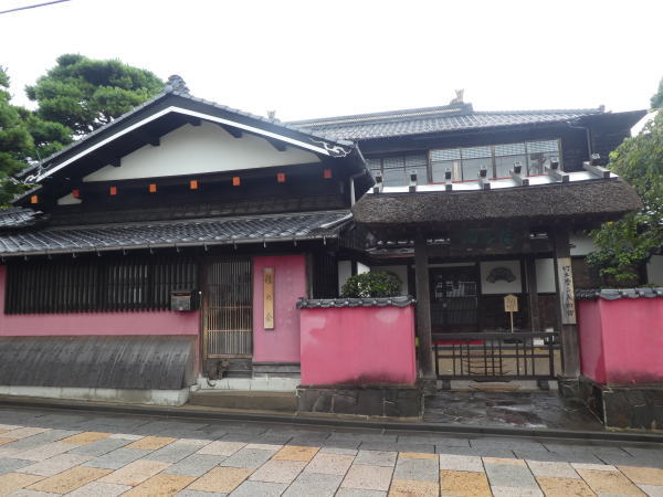 観光案内所で説明受けた通り、神社前の信号を左折して歩いていく。 しばらく歩いて相馬楼の通りに出る。江戸の風情の座敷で踊りが見られるのが今日は休み。 |
