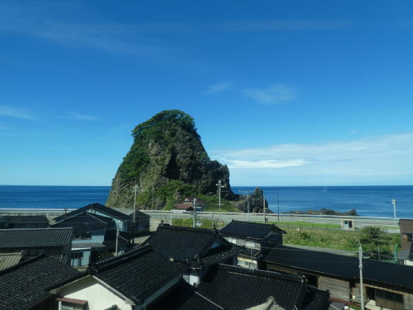 ![]() 新潟~村上~鶴岡駅間は左側車窓に日本海の青い海原を見ながら走る |