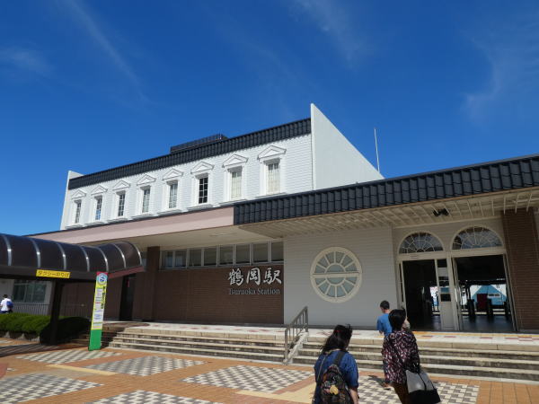 新潟から2時間、車窓の景色を眺めながら10:16分、鶴岡駅に到着。 鶴岡市は山形県庄内地方南部に位置する人口約12万人の都市。 |