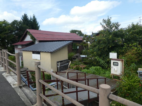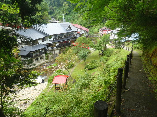 延命地蔵をお参り。滝の上の坂道を温泉街に下る。 |