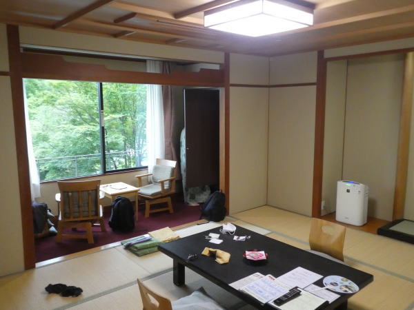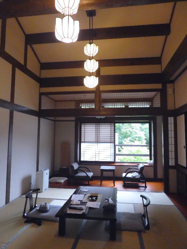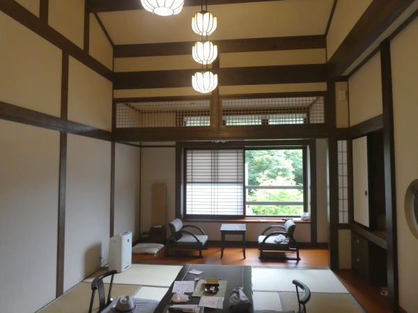 川沿いの本館は満室で予約できず、別館の部屋に宿泊。天井がとても高く広く感ずる造りのいい部屋。 |