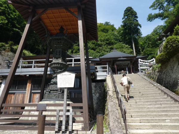 芭蕉もこぐっただろう山門。 ひと踏ん張りして登ると奥の院へ。 |