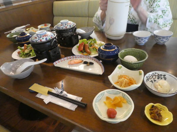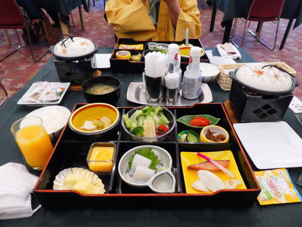 7時半〜朝ごはんは本館4階の食事処。昨夜の延長で全て作り置きばかり当たり前の朝食。 |