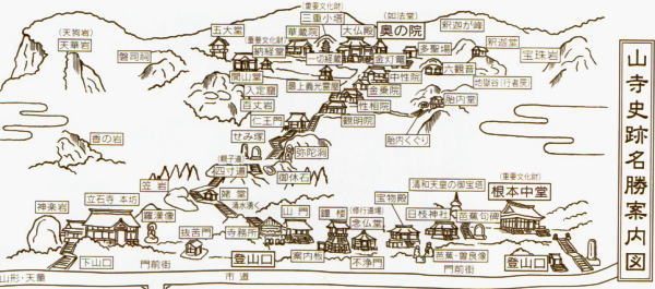 銀山温泉・大石田駅から「閑さや岩にしみ入る蝉の声」の詠まれた立石寺/山寺へ向かう。 |