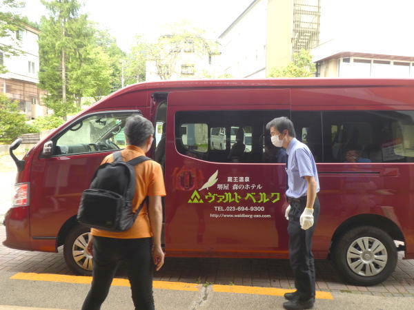 急な坂道を登って5分くらいで「蔵王温泉・ヴァルト.ベルク」に到着。 |