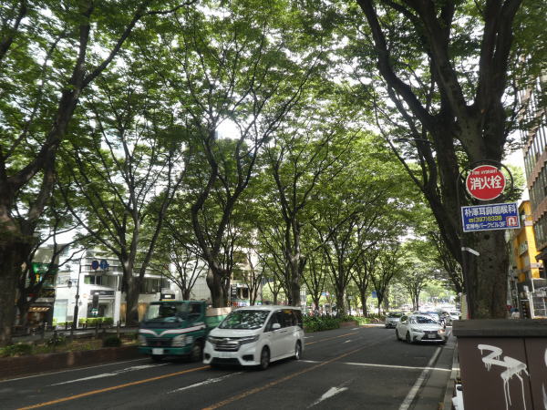 「杜の都」を象徴する定禅寺通、東西700mにケヤキ並木が続いている。 東京府中のケヤキ並木によく似ていて思い出す。 |
