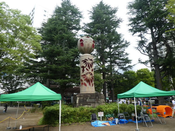 仙台博物館前から魯迅の碑。こんな所に魯迅の名前を見るとは、魯迅は青年時代の1年半を医学生として仙台市で過ごしたそうだ。 |
