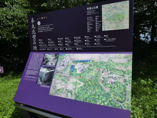 一帯は青葉城公園。清水門跡、沢門跡を過ぎると本丸北壁石垣前に。 |