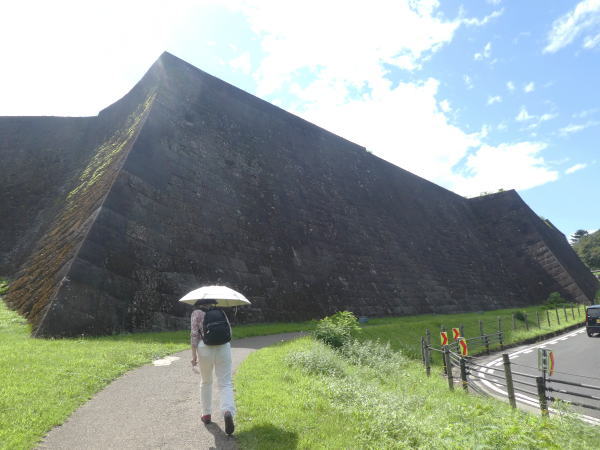 本丸北壁石垣は、美しい反りを持つ石垣で、最も高いところは約17mの高さがある。 |