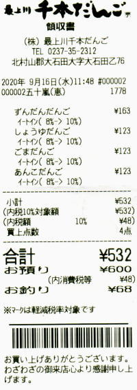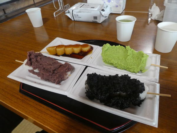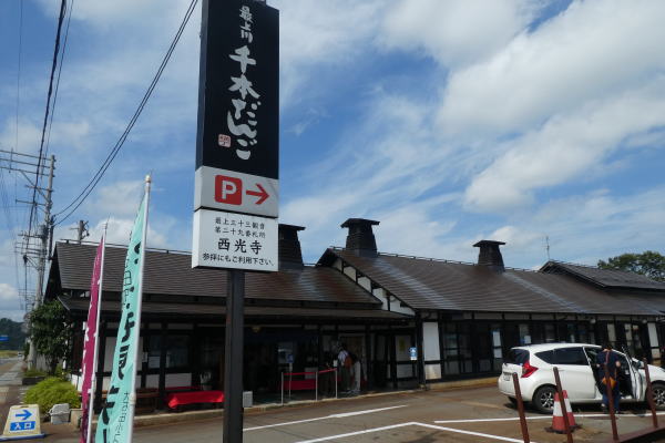 大通りに戻って更に坂道を下って、名物「最上川・千本だんご」へ立ち寄る。 |