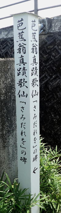 今は建物はなく当時の面影は感じられないが、あちこち当時の様子や句を詠んだいきさつなどが表示されている。 |