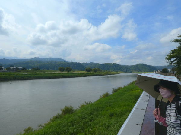 ![]() 大石田 高野平右衛門(俳号一栄)旧宅前から見た最上川、芭蕉目線で見る。 |