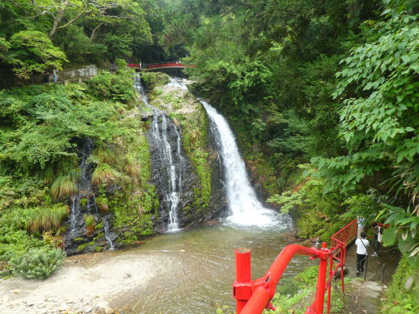 フロントで温泉街の地図をもらって、山に向かうとすぐに大きな「白銀の滝」 |