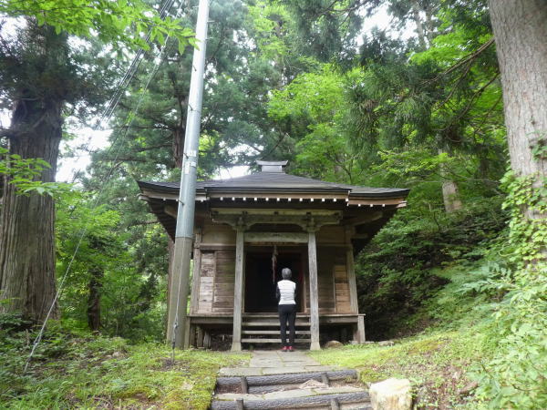 立石寺を開いた慈覚大師・円仁を祀る、開山堂と納経堂。 お参りする。 すぐ先に「五大堂」 |