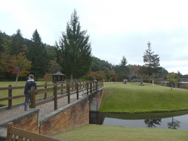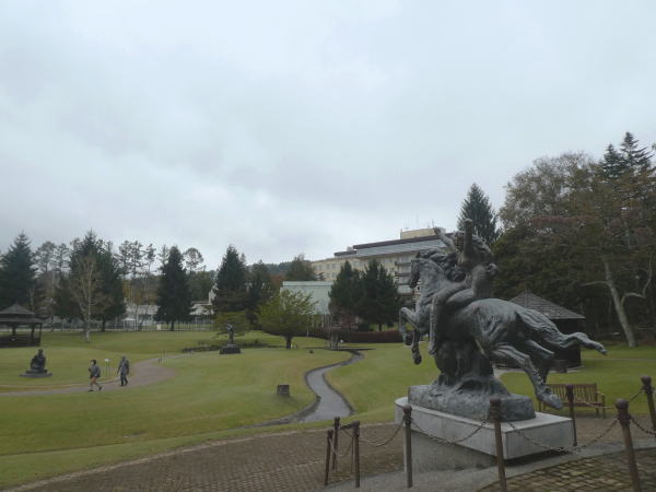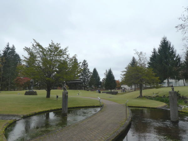 リゾートホテル蓼科の敷地を通って進むと広大な彫刻公園に出る。 |