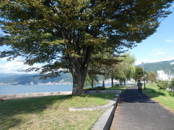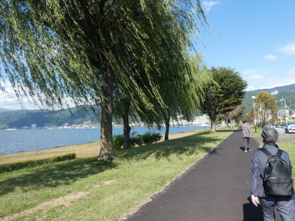 諏訪湖畔を歩く。 |