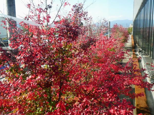 ![]() 茅野駅構内に見事な紅葉 |