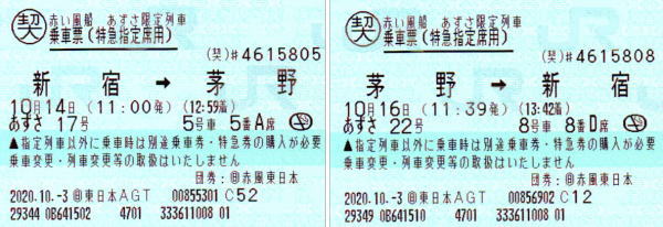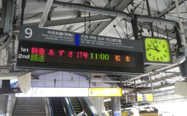 新宿駅発 午前11時の あずさ17号に乗って長野県茅野へ出発 |