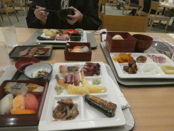 一つ一つ料理をうまいだの今一つだの品評しながら、ついつい腹十分目以上食べ過ぎてしまうのだから、夕食ヴァイキングは不健康極まりない。食事の出し方は経営効率を考える宿の事情も理解できる。できれば部屋でゆっくり食べたいが料金を考えて妥協する。 |