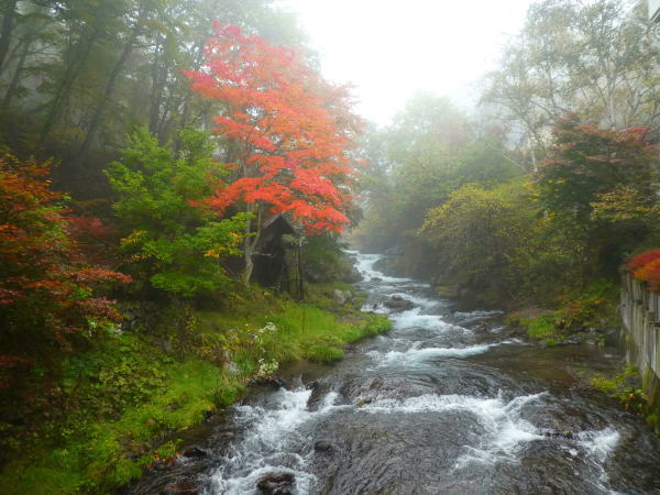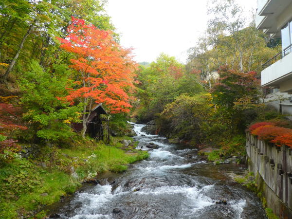![]() ホテル敷地内を流れる滝の湯川 |
