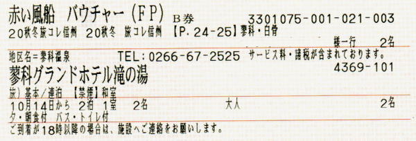 | 蓼科グランドホテル2泊+交通費=56800-GoTo割引=36920円 地域振興券9000円 | |||||||||||||||||||||