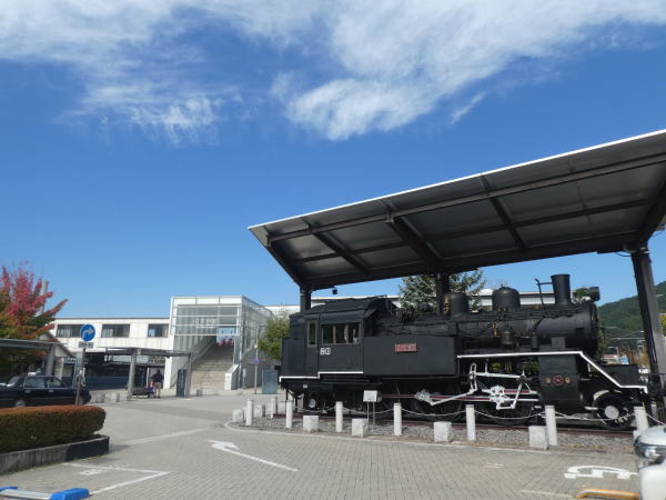 ![]() 茅野駅前広場に国鉄C12形蒸気機関車が展示 |