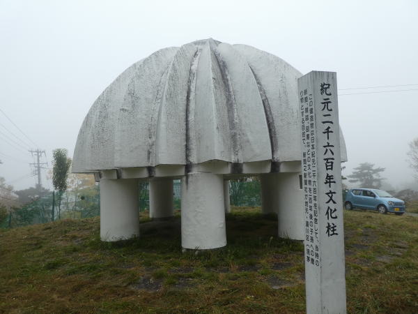 ホテルを出てヴィーナスラインを登っていく。しばらく歩くと、 紀元二千六百年文化柱の標識の立つ建造物。 なんだろうと寄って見る。書かれた説明では 【この建造物は日本紀元二千六百年を記念して、当時の新聞、雑誌、図書などの文化物を一百年後の子孫への贈り物とする目的として新聞社が地元・湯川区(現茅野市)のご協力を得て昭和15年(1940年)に建設したタイムカプセルで、ドーム内には六千余点の文化物を収蔵して、それから100年後の2040年元旦に開扉される】 100年を経て開扉されるまであと20年、見てみたい。 |