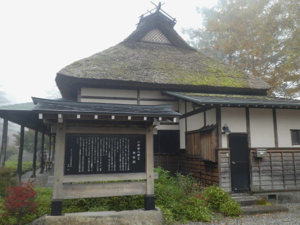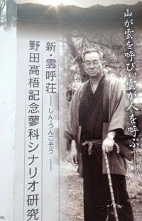 更に山道を進んでしばらく歩くと、目指した小津安二郎監督の山荘『無藝荘』に到着。 映画『小津の秋』の舞台になった建物。 |