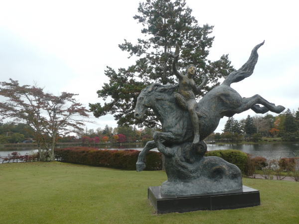 リゾートホテル蓼科/彫刻公園広場は蓼科湖畔までつづいている。あちこちに彫像が展示されている。 |