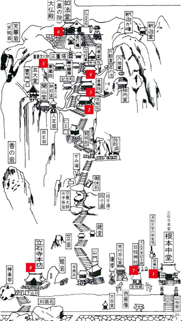 立石寺を開いた慈覚大師・円仁を祀る、開山堂と納経堂。 お参りする。 すぐ先に「五大堂」 |