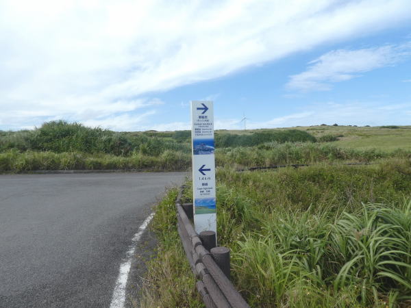 与那国島最東端・東崎(あがりざき)に到着。 先端に東崎灯台、雄大な景色が広がる周辺は、放牧地になっていて与那国馬や牛が放牧されている。 |