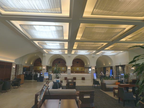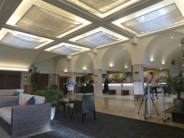 「はいむるぶし」とは方言で南十字星のこと。コンセプトは「ぬちぐすい(命薬)リゾート」 チェックインが3時で、それまでロビーで待つ。 |