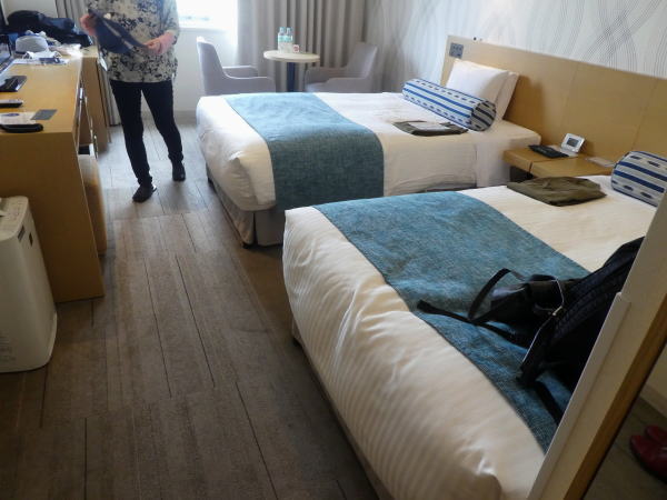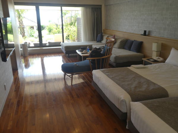 午後3時まえ、到着順に名前を呼ばれチェックインしたあと女性スタッフの運転するカートで部屋まで案内してもらう。広い敷地のホテルなので歩くのが苦手な人はカートをレンタルするらしいが、免許が必要なので、だいぶ前免許証返納していて歩くしかない。はじめからカートに乗る気持ちはないので問題ない。 |