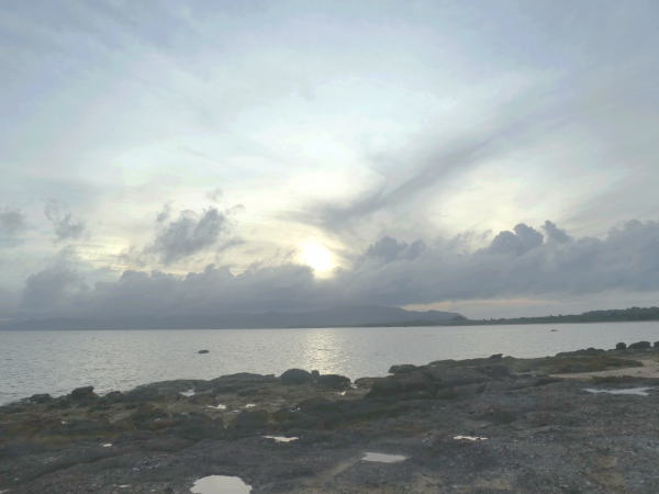 コンドイビーチへ着く。 入口の緑の木陰に自転車を置いて浜にでる。自転車にカギがなくNO.を記憶しておく。 |