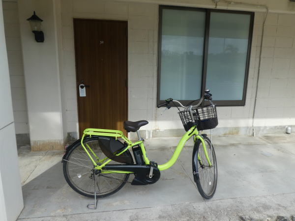電動レンタサイクルを借りて出発。今日も日焼けの苦手なMは部屋でのんびり。 |