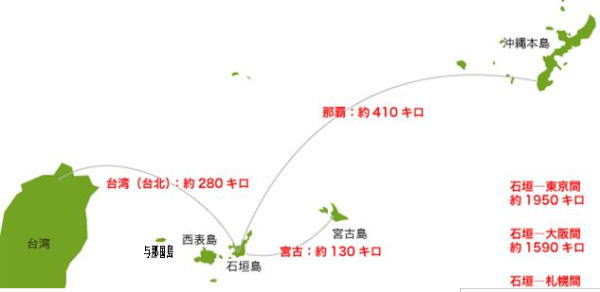 ![]() 石垣島は沖縄より台湾の方がだいぶ近い |