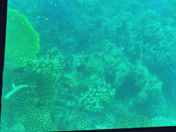 ゆっくり動き出し案内放送とともに、海底がすぐそこにサンゴも泳ぐ魚も手にとるように近くきれいに見える。 |