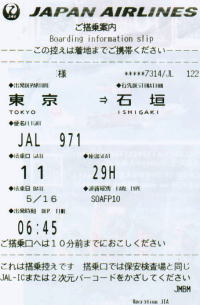 羽田空港6:45分発:JAL971便(ジンベエジェット)ハワイアン航空コードシェア便で石垣島へ。 JALマイル残り一部が失効寸前、どう利用するか考え急きょ石垣島へ行くことになる。 羽田-石垣2人往復40000マイル。特典航空券は希望通りに日時.席が取れないことが多いが石垣は大丈夫。ホテルは前日までキャンセルOKなので5月11日に予約を済ませ、八重山地方の天気と希望の便の空席を毎日確認しながら、出発直前の14日夜天気予報で好天を確信、往復の便を予約。 19日渡航予定の日本最西端の与那国島は悪天候ならどうしようもないので、渡航するかどうか石垣島に滞在中判断することにする。 |