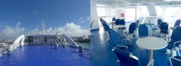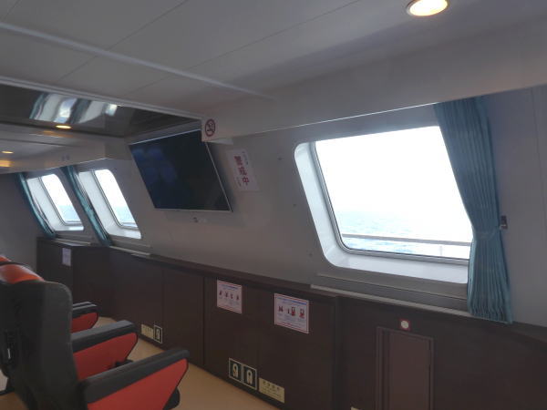 間もなく出航案内のアナウンスがあり桟橋から11:30発のフェリーに乗船。 |