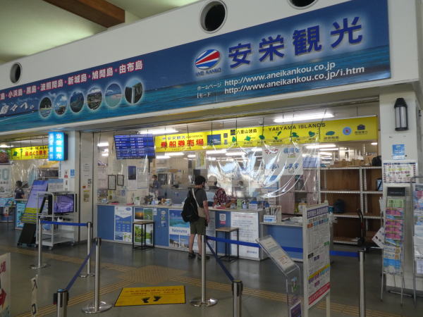 石垣港離島ターミナルで予約していた小浜島フェリー往復切符を買う。 |