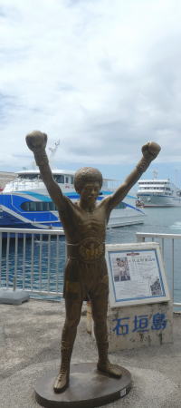 | フェリー乗場に島の英雄 石垣島出身:具志堅用高さん像 |