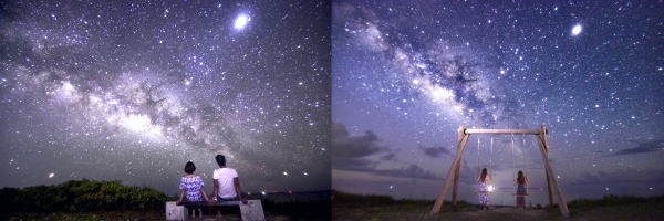 綺麗な星空日本一 この海岸から TBSテレビ放送で「天文学者27名が厳選!綺麗な星空」で全国1位に八重山地方が選ばれた星空が見れる。 国際天文学連盟が決めた世界共通の星座名である88星座のうち、国内最多の84星座が望める。 |