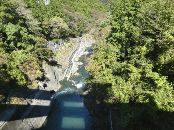![]() 白丸ダム上から左下に「魚道」 |