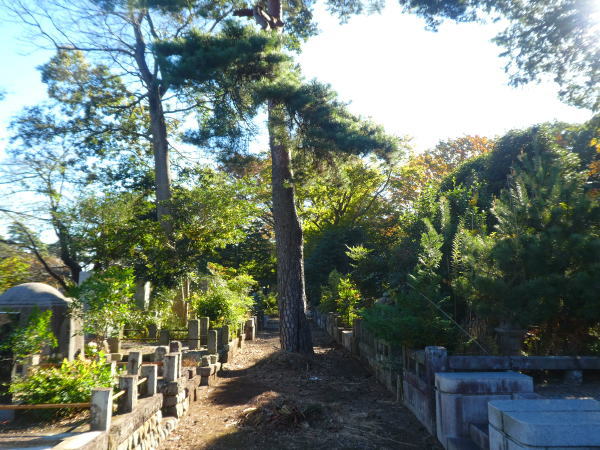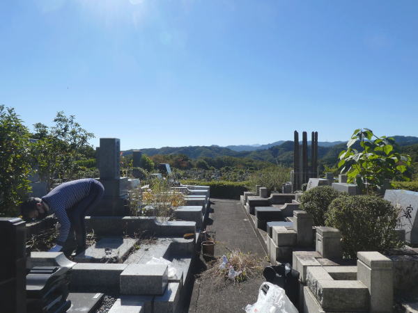 "終の棲家"まえからは霊園全体が見渡せ気持ちいい。 |