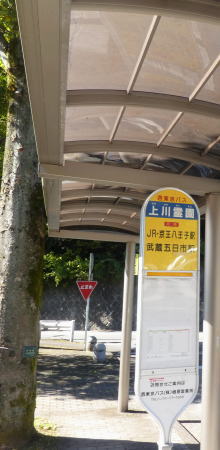 中央線の八王子駅から上川霊園までは、市内のユーミン生家「荒井呉服店」前なども通り、郊外へ出てから約40分で到着。 |