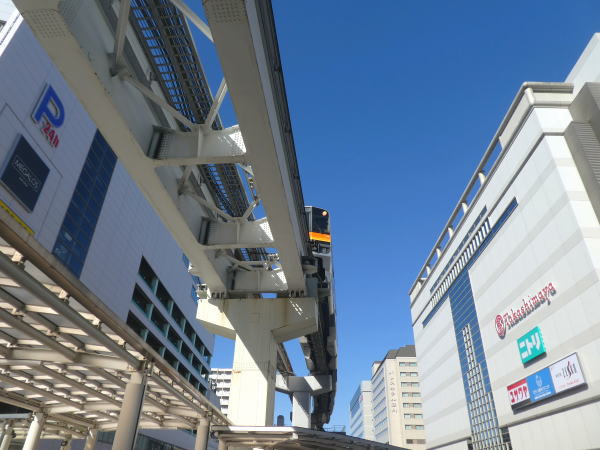 駅を出ると、昔は影も形もなかった多摩都市モノレール立川北駅の高架駅が目に入る。 多摩都市モノレールは、上北台(大和市)~多摩センター駅(京王/小田急)を結ぶ。 |