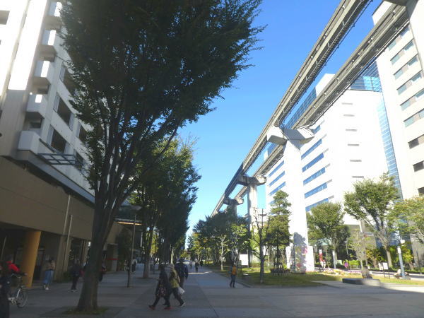 モノレール立川北駅の高架駅を抜けて、昭和記念公園方面に歩く。 |