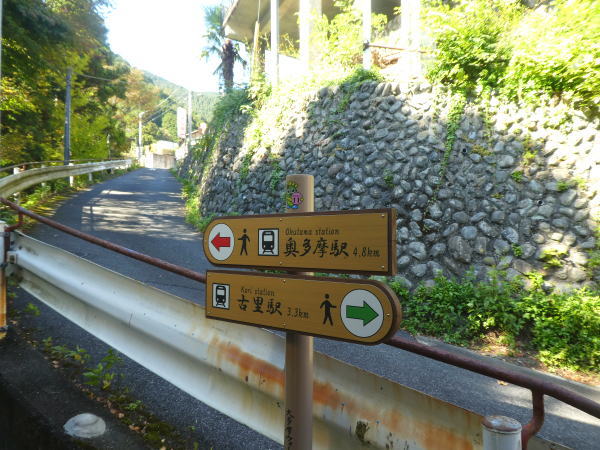 古里(こり)駅でトイレを済ませ、奥多摩まで渓谷山道を8㌔先の奥多摩駅に向けて出発する。 |